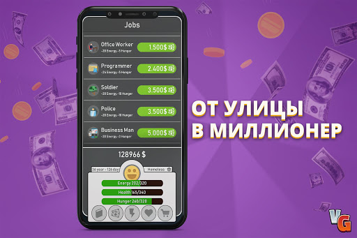 💲 Начните с улицы и доберитесь до миллионеров. 💲 Вы можете улучшить себя, приобретая образование и работая в лучших условиях. 💲 Вы можете купить роскошные дома и яхты, собирая деньги.