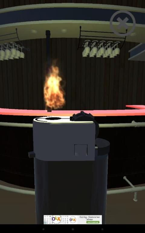 Lighter 3D is a classic looking virtual simulator for cigarette lighter - small game style app with realistic looking fire flame on top of it, with movable stone wheel, spark and flame effects. To lit the lighter up and see the flame with smoke just click anywhere on top of the lighter. The striker wheel will start to turn, sparks will come out and if you are lucky a flame with smoke will come out on top, lighting up the room. The lighter also has sound effects - when you spin the striker wheel you will hear a turning sound, followed by a flaming sound when the fire lights up. Features: -Great 3D graphics -Realistic looking lighter -Great visual effects -Custom sound effects -The flame may lit up, or not, from the first try. Just like a real cigarette lighter -A nice, real looking fire with smoke