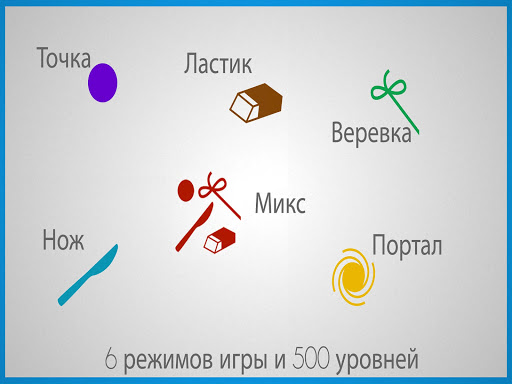 - 6 режимов игры: точка, ластик, петля, нож, портал и смешанный