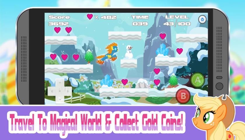 Все пони счастливы, потому что мы присоединились к их миру, чтобы помочь им и сделать, что вы должны выиграть гонку, и вы должны собирать монеты, чтобы увеличить ваш счет и перейти от одного уровня к другому, но не забывайте, что они много опасностей на дороге, вы должны быть быстрыми или вы будете и до потеряли, с каждым уровнем вы откроете какой-нибудь классный материал для пони.
