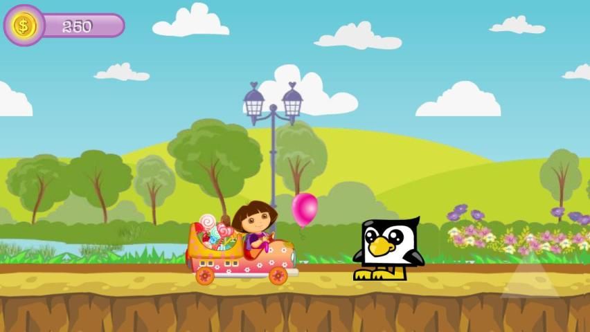 Драйв конфеты автомобиль принцессы Доры. Прыгать через препятствия и собирать звезды. Эта игра содержит много веселья и прекрасных элементы для девочки.