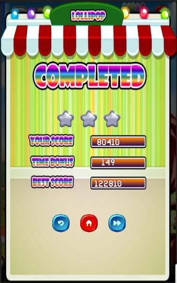 * Сделать леденец звезду до последней строки, чтобы пройти уровень.