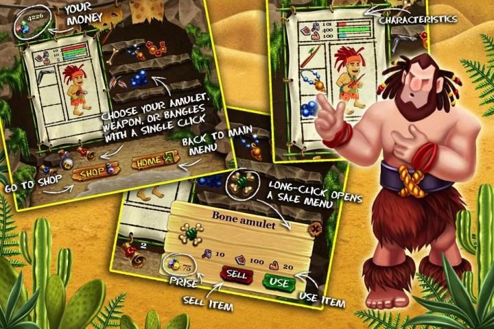 Вы должны посетить магазин - есть что-то, что сделает ваш персонаж практически неуязвим! Расширенный оружие, амулеты и браслеты, увеличивая степень защиты персонажа, бутылка с волшебным эликсиром для восстановления здоровья (вам нужно пить непосредственно во время боя), и заклинание свитки для уникального воздействия (проверить его в бою) - без покупок невозможно покинуть магазин! Чем выше уровень персонажа, мощное оружие, он может использовать. После магазина не забудьте заглянуть в пещеру - здесь вы можете оборудовать оружие и амулеты вашего персонажа, и добавить до 4 бутылок и свитков для каждой битвы! Длительное нажатие на артефакт поможет вам продать ненужное оборудование. Давайте вернемся снова на арену - новых побед !!!