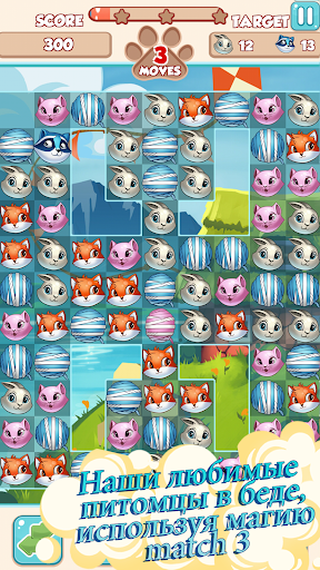 Нет времени ждать! Скорее на помощь! Ведь наши любимые питомцы в беде. Кто-то похитил всех зверят. Хитрые злодеи похитившие животных умеют придумывать головоломки match3 в ряд. Нам нужны лучшие из лучших, добрейшие и добрейших, чтобы скорее освободить животных. Сможешь нам помочь?