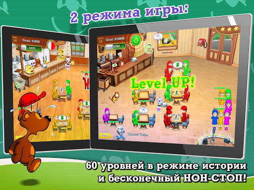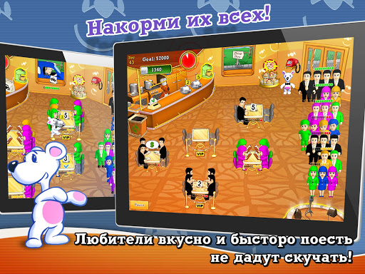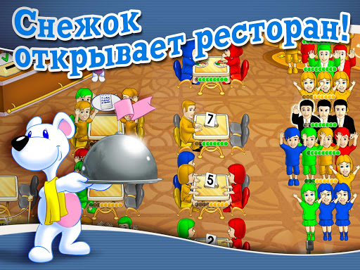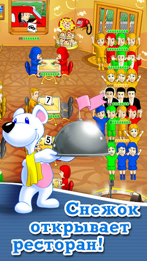 Медведь Снежок открывает собственное заведение и гарантирует простое и заводное развлечение. Усадить, взять заказ и отнести на кухню, принести еду, рассчитать, убрать со столов... Еще цвета "три в ряд" подобрать и действия спланировать, чтобы все посетители остались довольны и не поскупились на чаевые! И не забыть про торопыг-водителей и VIP гостей. Настоящее кулинарное безумие!