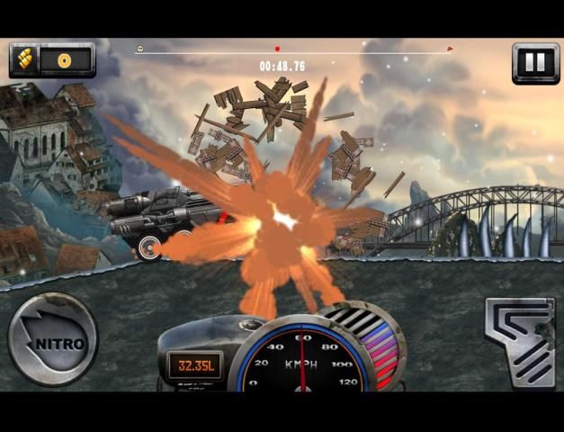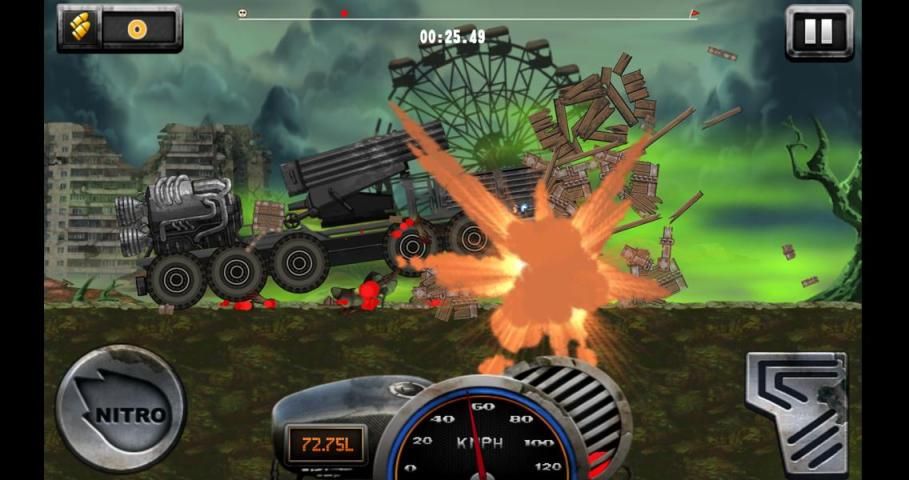 Обновите свой автомобиль, грузовик, автобус или танк с пушкой бустеров и множество других вещей, чтобы сделать его к финишной черте.