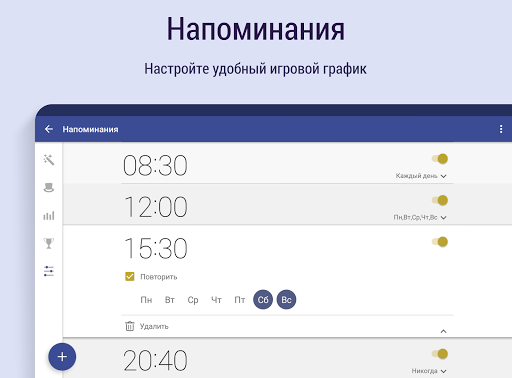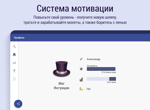 * Разноплановая система мотивации, включая монеты, шкалу лени и т.д.