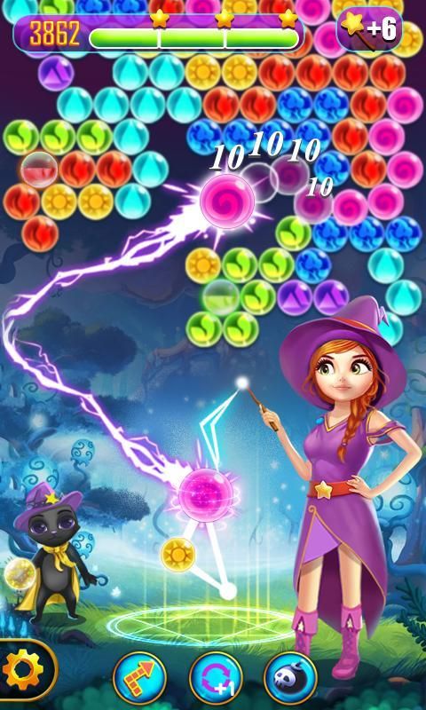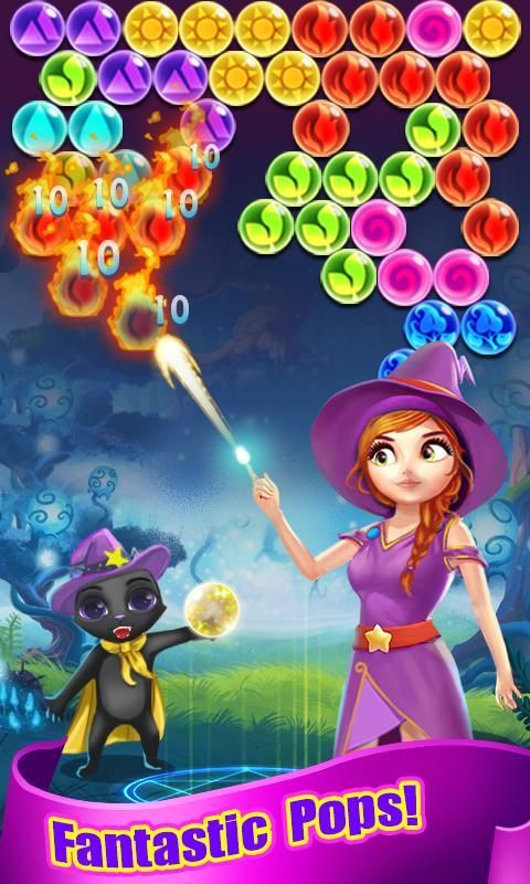 Magical Witch Pop, фантастическая графика геймплей о поп-матч пузырь головоломки.