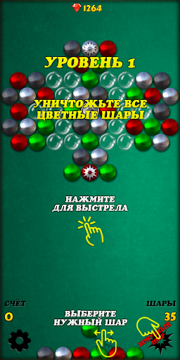 • Используйте 5 видов бонусных шариков за драгоценные камни, которые помогут вам пройти уровень. Кнопка внизу справа.
