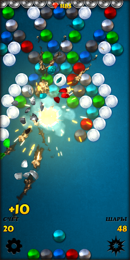 • Соедините 4 или более цветных шариков и получите специальных бонусный шар.
