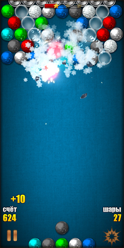 Ваша цель - взоровать все шарики на уровне, набрав как можно больше очков.Стреляйте по ним разноцветными магнитными шариками и собирайте 3 и более в ряд что бы взорвать их. Скидывайте шарики в низ и получайте драгоценные камни, которые можно использовать для покупки бонусных шариков. Также вы можете использовать акселерометр для перемещения шаров.