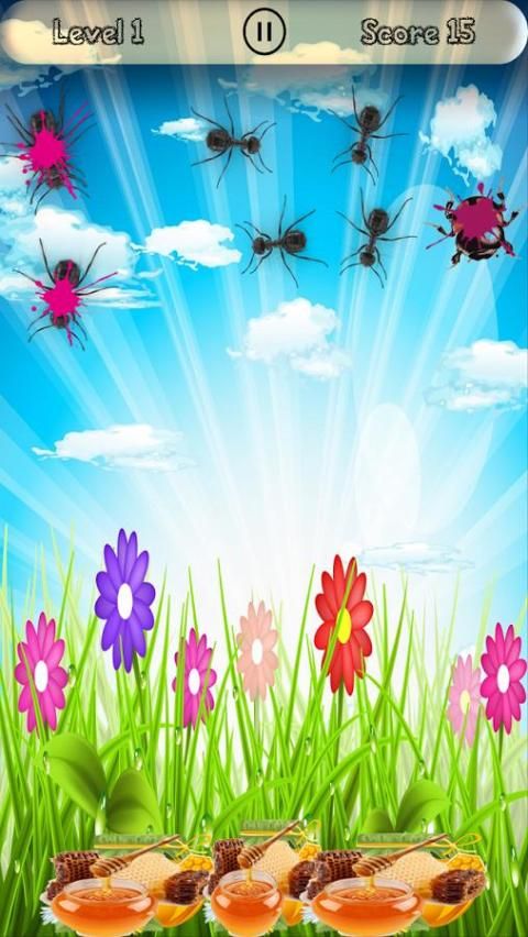 Уничтожить все пауки, жуки и муравьи! . "Сохранить пчел, чтобы сохранить здесь мед, вы также можете проверить свою ловкость и скорость реакции.