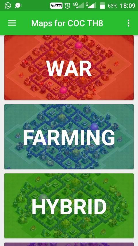 Новые базовые карты для Битвы Кланов Th8 это бесплатное приложение в стратегии категории, в этом приложении я хочу помочь Столкновению Кланов построить базовый макет в 2017. в этом приложении включено верхний базовый макет и лучший макет войны и любой другой, чтобы получить вдохновение, как построить сильную базовую Разметку в четырех баз в этом приложении. например, является War Base Layout, сельскохозяйственная Base Layout, Hybrid Base Layout и Trophy базы Layout.