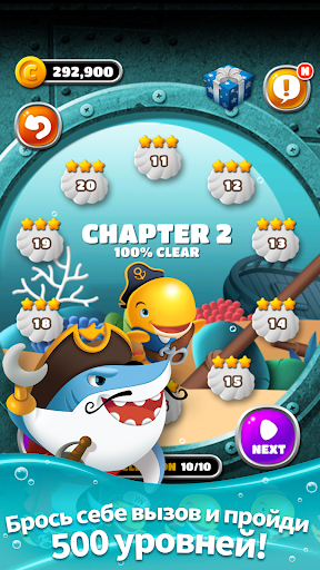 Попадите в 3 или более пузыря, чтобы спасти украденные Морские Звёзды!