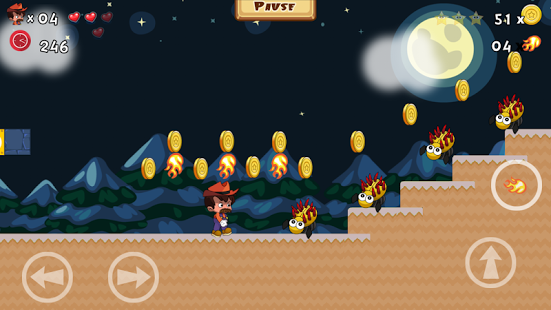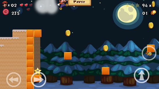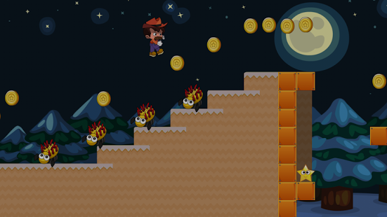 Join cowboy in his adventure, have fun in this game. Be careful the cute little monster, you can use bullet to kill them. Collect 100 coins to get one more life! Jump, Run, Shoot, Skating. Try you best to pass all the levels! Collect all stars can get more scores. Enjoy the one of the best platform games ever. Download Super Cowboy now and start playing this amazing game!