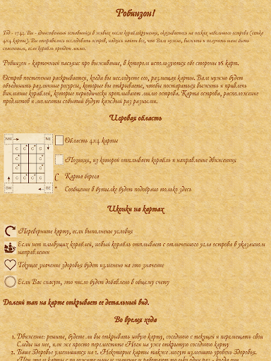 Робинзон - карточный пасьянс про выживание, в котором используются обе стороны 16 карт.