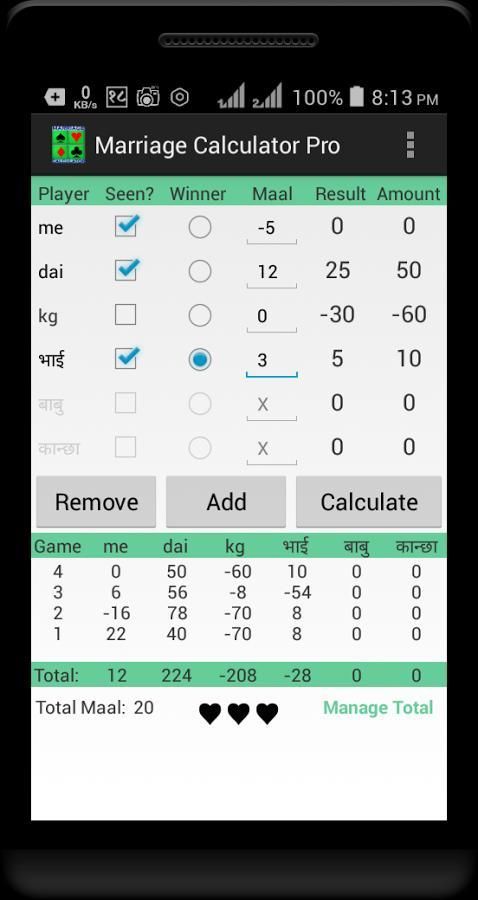 Там вы можете получить АПК приложений для андроид, установленный на вашем устройстве. 30,000+ пользователи скачали последнюю версию Marriage Calculator в 9Apps бесплатно каждую неделю! Если вы не любите старые версии, можно обновить его прямо сейчас. Это горячее приложение было выпущено в 2017-12-10. Найти больше программ, которые вы искать в 9apps.com.