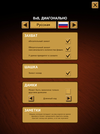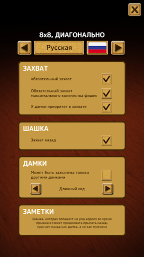 Играйте в эту увлекательную версию шашек против компьютера, другого игрока, сидящего рядом, или реального противника в любой точке мира.