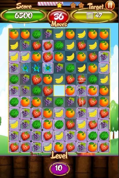 Получить точку путем стирания фруктов. Вы можете сделать более длинную цепь фруктов, чтобы получить больше очков!
