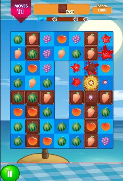Получить точку путем стирания фруктов. Вы можете сделать более длинную цепь из фруктов, чтобы получить больше очков!