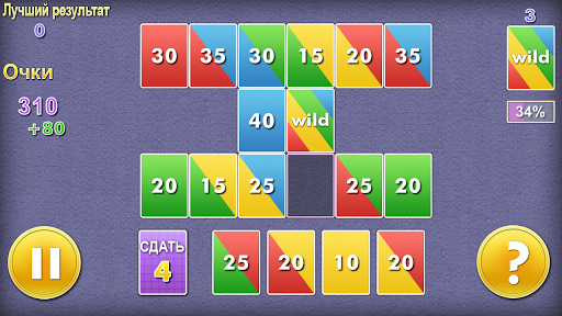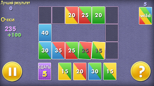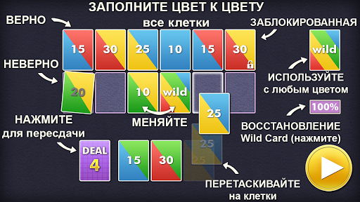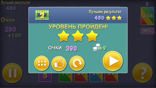 Три сложности и много уровне не должны дать Вам быстро заскучать! Если возникли сложности - используйте Wild Card, так как такие карточки соединяются с любым цветом.