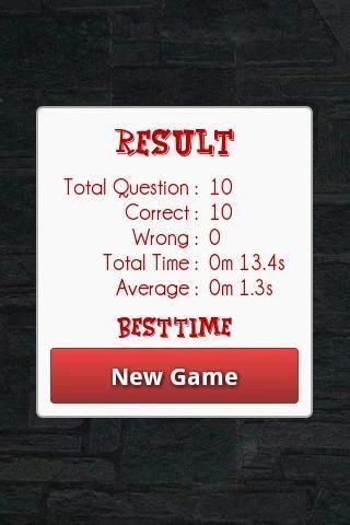 Правила игры проста, сделать свой собственный лучшее время результат, финишировав игру как можно быстрее, и разорвать его, чтобы тренироваться и поддерживать свою математику мозга мастерство оттачивать и оттачивать.