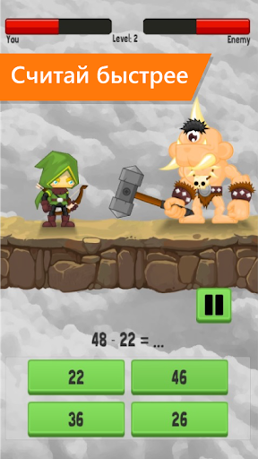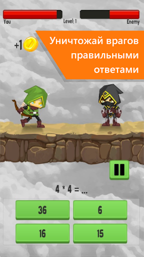 Вас ожидает много сражений, каждый враг с радостью готов уничтожить вашего героя. Один правильный ответ дает вам силу для удара. Чем быстрее вы отвечаете, тем больше у вас шансов выжить. И даже не думайте отвечать наугад, потому что каждый неправильный ответ - это дополнительный шанс врага нанести вам удар.