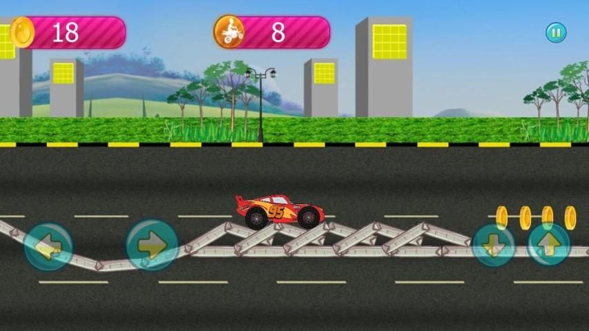 Там была гонка гонки с гоночным автомобилем McQueen. через ритм, чтобы получить как можно больше монет, как это возможно, чтобы купить более сложную арену.