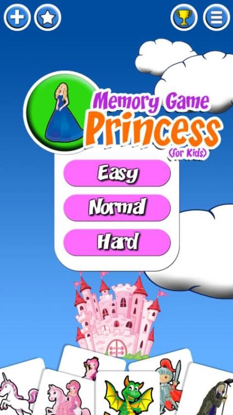 * Память игры Принцесса (для детей), содержит симпатичные изображения различной принцессы, рыцари, замки, драконы, и так далее.