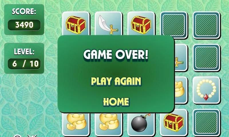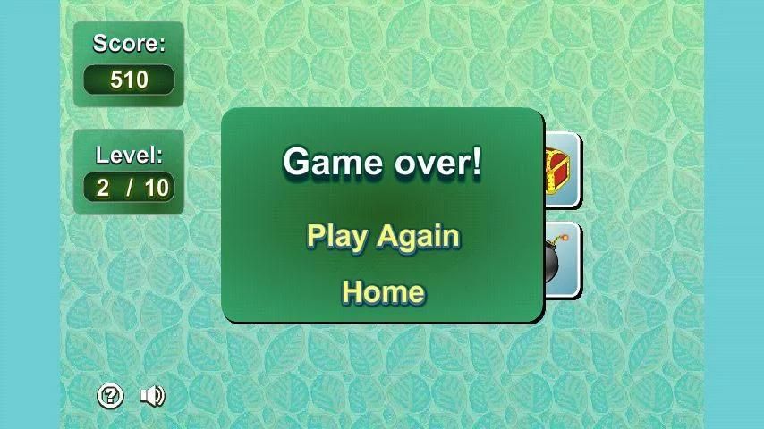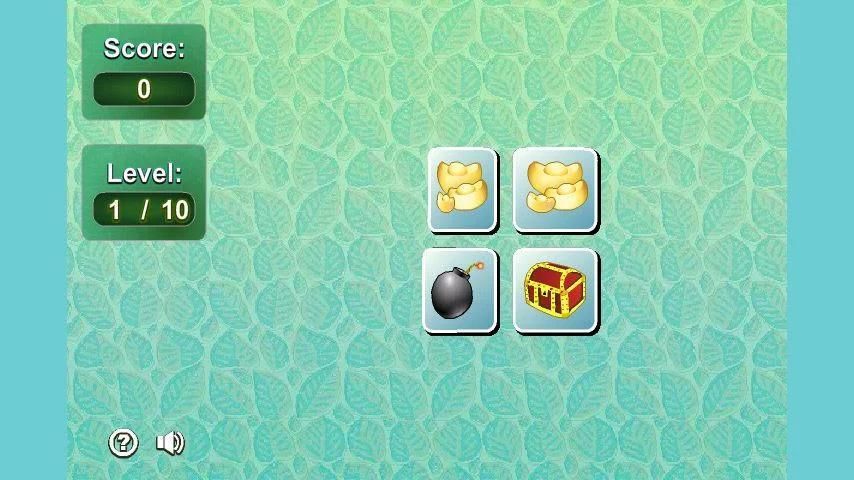 In this game there will be a grid of cards. You will be given some time the memorise the contents of the cards, after that the cards will be covered. You will then need to open the cards, but you need to avoid the bombs otherwise you will lose the game. You can score more if you can remember the positions of the same items and then open them together. As the game progresses there will be more and more cards and the game will be more and more challenging. This game is free.
