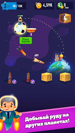 Космос ждет смельчаков. Вперед, к освоению вселенной и открытию ее богатств! Начни добывать золото, руду и другие ископаемые с помощью бура, перевози их на кораблях и расширяй свою империю!