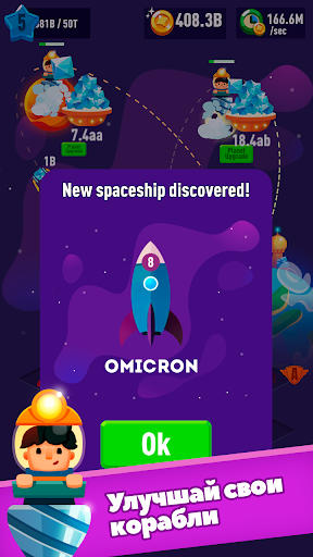Добыча нефти, золота, алмазов, руды и других ресурсов в космосе - будущее человечества, а также способ неплохо подзаработать. Стартуй как простой шахтер - майнер, бури недра планеты и перевози ресурсы с помощью космических кораблей. Мерж поможет улучшить и увеличить твой флот! Стань самым богатым магнатом в галактике!