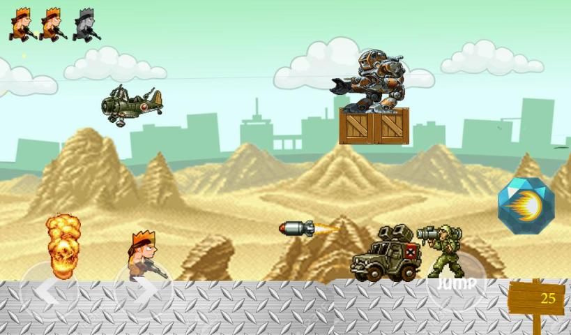 Contra Рэмбо это простая игра и классная игра бежать и выстрел противника в пустыне