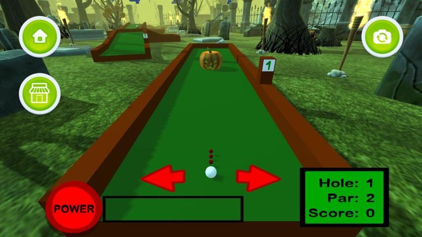 Мини-гольф 3D Хэллоуин бесплатный мини-гольф игра, которая включает в себя 18 лунок различной сложности с простой в использовании интерфейс и большой 3D графики, что имеет место вокруг жуткий кладбище и замок. Мини-гольф 3D Хэллоуин имеет нормальный режим и режим практики, где вы можете выбрать индивидуальный отверстие практиковать столько, сколько вы хотите. Есть также 3 режима камеры в цикл через в том числе вид за-шар, воздушный вид, и другой вид, который постоянно вращается вокруг отверстия. Вы можете войти в Google с играть в игры услуг конкурировать с друзьями на глобальных списки лидеров и зарабатывать достижения, а также. Лидер платы ранжировать лучших результатов за текущий день, неделю, и все время, а также общее количество отверстий в одном и туров завершены. Если вам нравится мини-гольф, вы полюбите эту расслабляющую, но сложные мини игры в гольф. Смотрите, если вы можете установить высокий балл и стать мини-гольф чемпион!