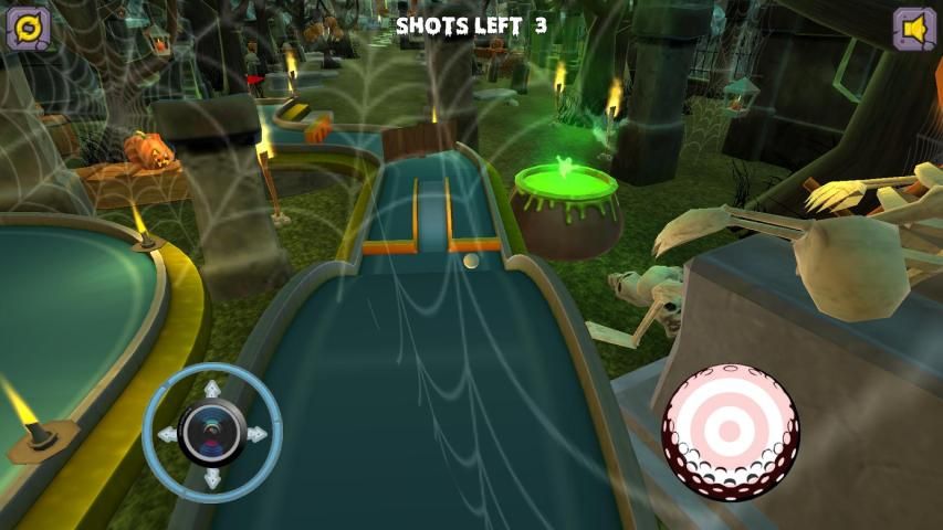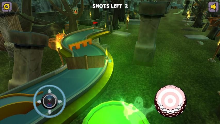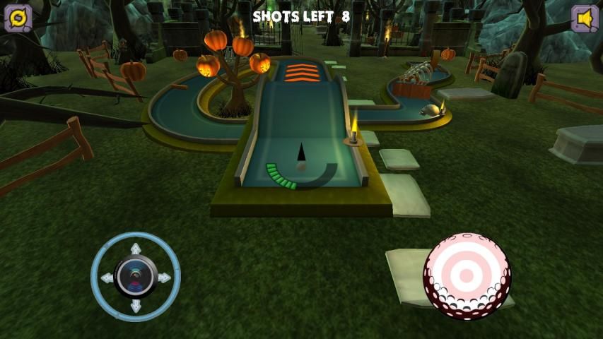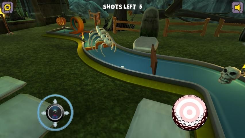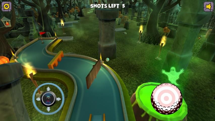 Как вы работаете свой путь через отверстия нужно будет ударить мяч через петли, скелеты, вокруг тыквы и всех других видов жутких интерактивных объектов и препятствий.