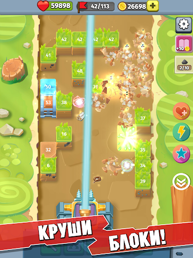 🔸 Запускайте цепочку шаров по блокам. Прокачивайте навыки, которые позволяют наносить больше урона, собирать больше ресурсов или усиливают броню и пушку вашего танка.