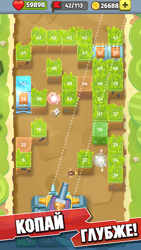 ⭐️ Исследуй пещеры, разрушай блоки, собирай редкие ресурсы, которые пригодятся в крафтинге новых предметов. 🔨 Улучшай свой танк! Майни глубже и глубже!