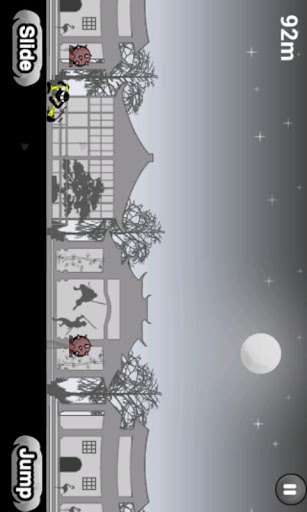 2. Press slide button on left to have ninja rolling under the obstacle