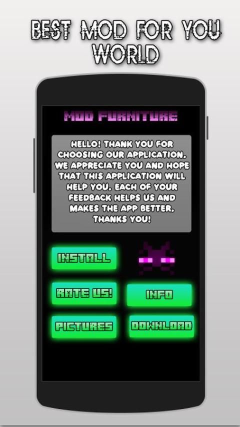 9Apps представляет бесплатные загрузки apk приложений для андроид. 30,000+ пользователи скачали последнюю версию Mod Furniture в 9Apps бесплатно каждую неделю! Когда вы пользуетесь им, вы будете привлечены. Это горячее приложение было выпущено в 2017-12-27. Оно доступно к бесплатной загрузки в 9Apps.