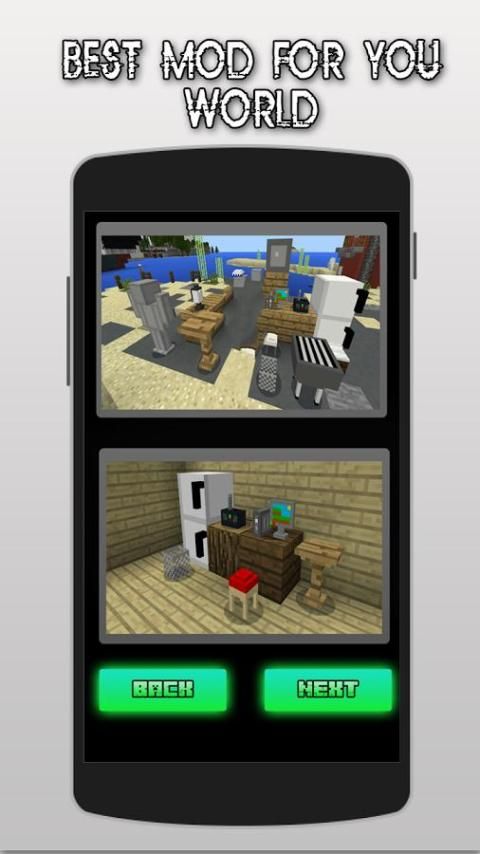 Большой аддон, который добавляет огромное количество новой мебели. Мебель используется в современном мире, по этой причине, вы можете значительно упростить выживание в Minecraft PE. В вашем распоряжении компьютер, холодильник, микроволновая печь, стол и стулья.
