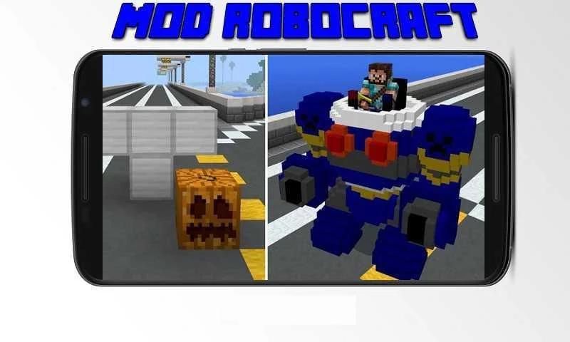 RoboCraft мощный робот, который может быть установлен и под контролем игрока. Она имеет много технических преимуществ, такие как способность стрелять ракеты по враждебным целям, быстро бегать и высоко прыгать. Это действительно конечная монтируемый автомобиля, если вы хотите простой и более эффективный способ победить врагов в MCPE.