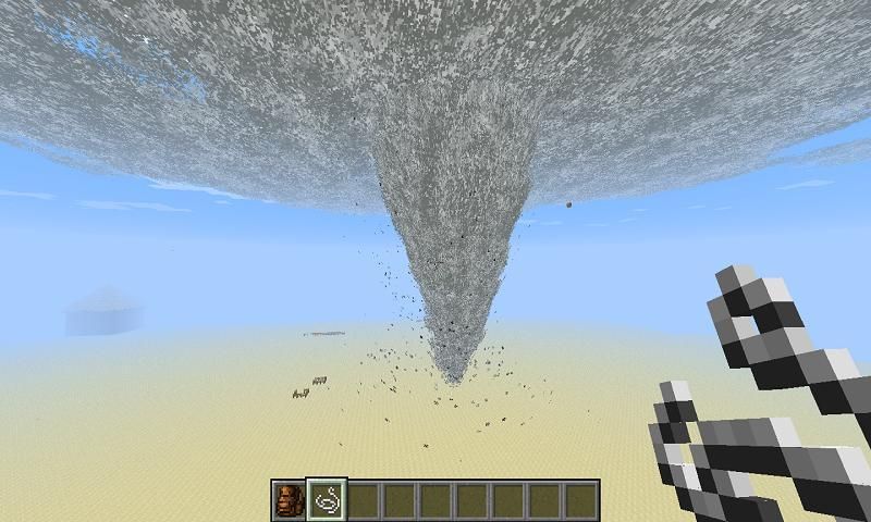 Торнадо в основном воздух, который вращается силой и разрушает то, который получает в своем роде. Этот мод позволяет породить торнадо. Это очень опасно, поскольку это разрушит части местности, но она также может серьезно повредить вам, если вы получаете слишком близко.