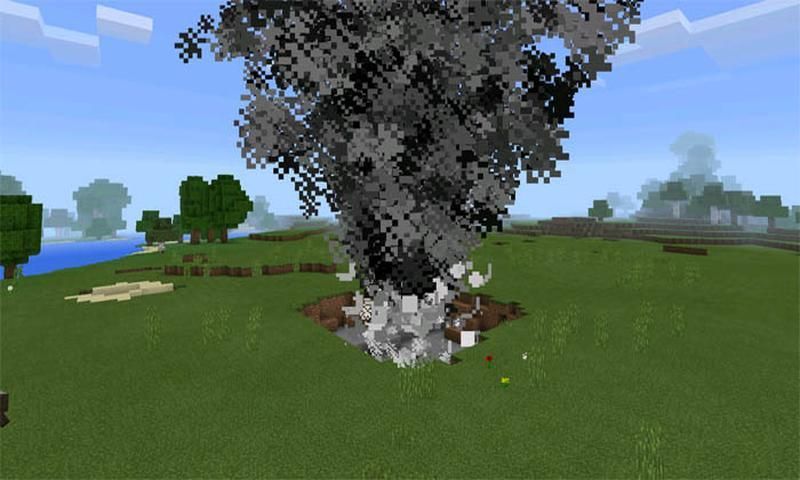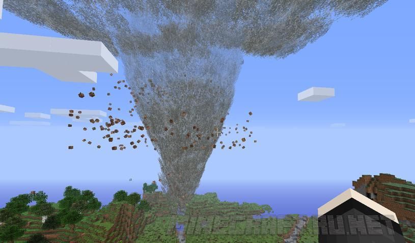 Мод Торнадо в основном воздух, который вращается силой и разрушает вещи, которые попадаются на его пути. Этот мод позволяет породить торнадо. Это очень опасно, так как это разрушит часть местности, но она также может серьезно повредить вам, если вы подойдете слишком близко.