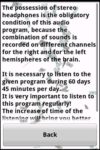 The unique tool for reprogramming your subconsciousness on attraction MONEY in your life.