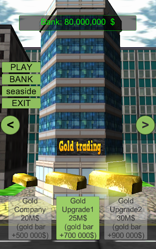 Так же есть условный банк, в котором постепенно складывается башня игровых денег с основанием 1 квадратный метр. Размеры (высота) пирамиды вычисляются исходя из данных приближенных к реальным. Ориентировочно можно считать, что 1 кубический метр из купюр по 100$ стоил бы более 80 млн $.