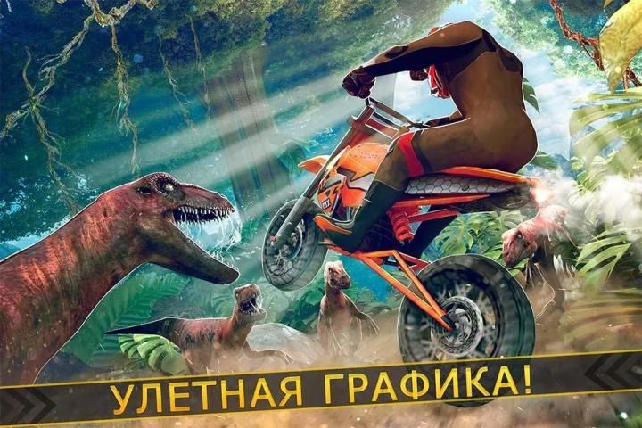Вы профессиональный мотоцикл подготовки пилотов для чемпионата по мотокроссу! Вся ваша жизнь идет о мотоциклах! Вы проводите шесть часов в день верхом на своем мотоцикле, чтобы стать лучшим пилотом по фристайлу: Ваша история это история чемпиона! И для того, чтобы подготовить себя к этому фристайл чемпионата вы решили переехать в джунгли, чтобы практиковать верхом на своем мотоцикле на поле в плохих условиях... Негостеприимный место далеко от города, в котором говорится, что странные существа живут внутри... Виды, которые представляют собой смесь динозавров и диких животных джунглей. Но вы не заботитесь об этих слухах: Начните сейчас подготовку к удивительной гонке мотоцикл, который может сделать вас чемпионом мира!