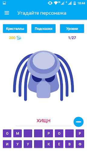 Кино Викторина – это игра про кино и персонажей, для всех любителей фильмов и сериалов. Если вам кажется, что вы знаете всех героев фильмов и можете угадать любого персонажа, то эта викторина вам понравится. Угадай героев фильмов и сериалов, возьми за это кристаллы и пройди все уровни.