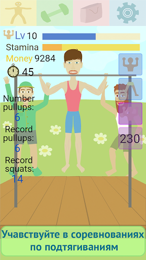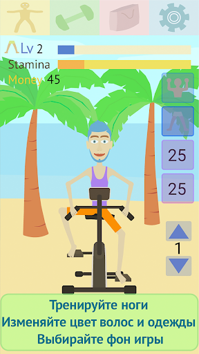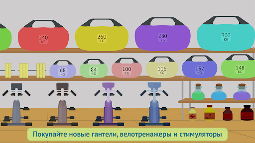 - В игре легко разбогатеть. Вы будете получать деньги за поднятие гантелей, за вращение педалей велотренажеров и за подтягивания и приседания на соревнованиях.