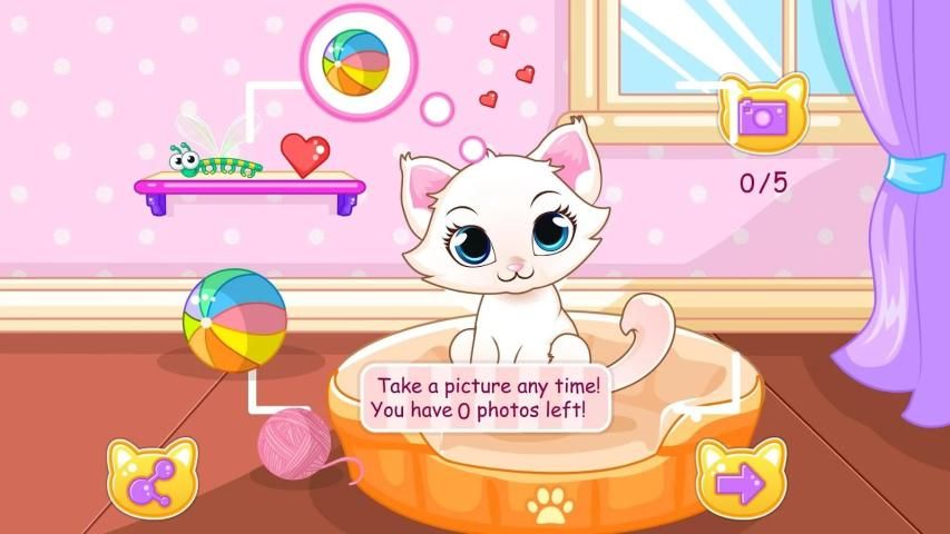 Вы когда-нибудь хотите сделать альбом для вашей милой котенка? Это отличный способ поделиться забавные моменты вашего питомца с вашей семьей и друзьями. В этой увлекательной игре под названием My Kitty альбом, вы можете взять 5 фотографий в общей сложности в то время как вы заботитесь о своем котенке. Нажмите кнопку камеры в любое время вы хотите, чтобы сохранить изображение в то время как она ест, поливать и играть. Вы можете изменить некоторые взгляды на нее с большим количеством костюмов и аксессуаров, тоже! Если у вас есть 5 фотографий готовы, сделать альбом для нее! Вы можете выбрать шаблон альбома и добавить наклейки, чтобы украсить альбом! Весело играть в эту игру My Kitty альбом!
