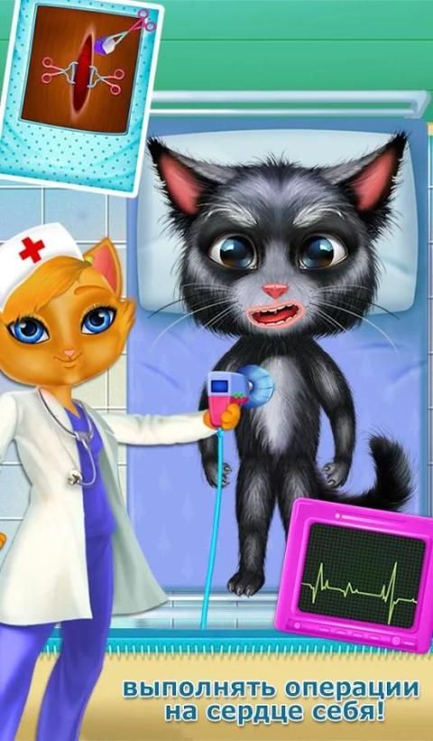 Стать хирургии врач в этой веселой и реалистичной хирургии симулятор игры. Выполните экстренную операцию, как и в реальной жизни на травмированного котенка. Котенок ждет вас, и она нуждается в вашей помощи, чтобы освободиться от боли. Давайте поможем котенка восстановить с помощью лечения и ухода за ней. Используйте настоящий врач инструменты, такие как скальпель, сшить раны, стетоскоп, инъекции, пинцет, лазер, лед и исследовать 4 увлекательных и различных хирургических операций (1) Кардиохирургия, (2) Желудок хирургия, (3) Печень хирургии, (4) Пластика ушей , Используйте свои навыки хирургии и лечения вашего маленького друга котенка, но будьте осторожны, здесь вам нужна умная работа, так что вы ей не больно. В этой игре, которая включает в себя несколько операций для вас, чтобы получить удовольствие от игры. Так заполнить каждый и каждая операция по отдельности и иметь удовольствие.